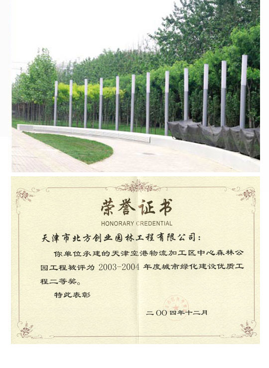 天津市北方创业园林股份有限公司是我国城市园林绿化行业的龙头型企业,多项业务指标在国内名列前茅,公司是中国园林绿化AAA级信用企业,天津市“守合同重信用”企业,公司拥有的“北方园林”商标是天津市著名商标。公司注册资本8000万元,总资产逾12亿元,净资产过4亿元,下辖9家子公司和6家分公司,具有城市园林绿化企业一级资质和风景园林工程设计专项甲级资质,公司下设有科研所、设计院及多家专业公司,已获得国家专利69项,具有强大的研发、设计、施工一体化实力和作业能力,业务范围遍及全国各地,并以过硬的技术水平和施工质量,先后荣获2013年度天津市优秀诚信施工企业、天津市建设工程金奖海河杯、2013中国锦州世界园林博览会综合管理金奖等多项业内大奖。
