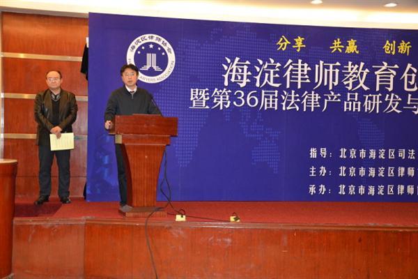 首先由北京市律师协会副会长、海淀区律师协会会长张小炜代表海淀区律师协会发表热情洋溢的讲话,张会长希望律师同行们能够打开心门、开启智慧,进行业务创新和管理创新,走专业化、精品化发展道路,把业务做精做细,为客户创造多重价值。
