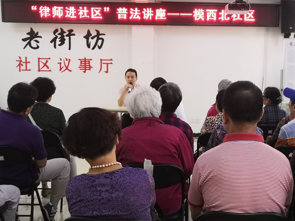 2018年5月23日上午10时,北京京翔律师事务所应邀来到模式口西里北社区居委会,为辖区居民进行普法讲座。